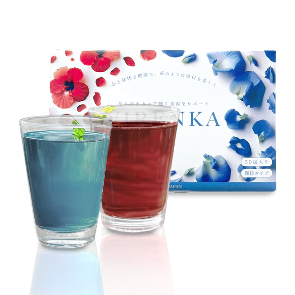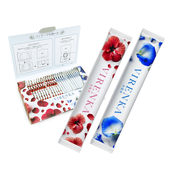 雑誌anan腸活特集掲載キャンペーンセールはビレンカ(バタフライピー)青色15包、ビレンカ(ハイビスカス)赤色15包の新感覚飲料になります。